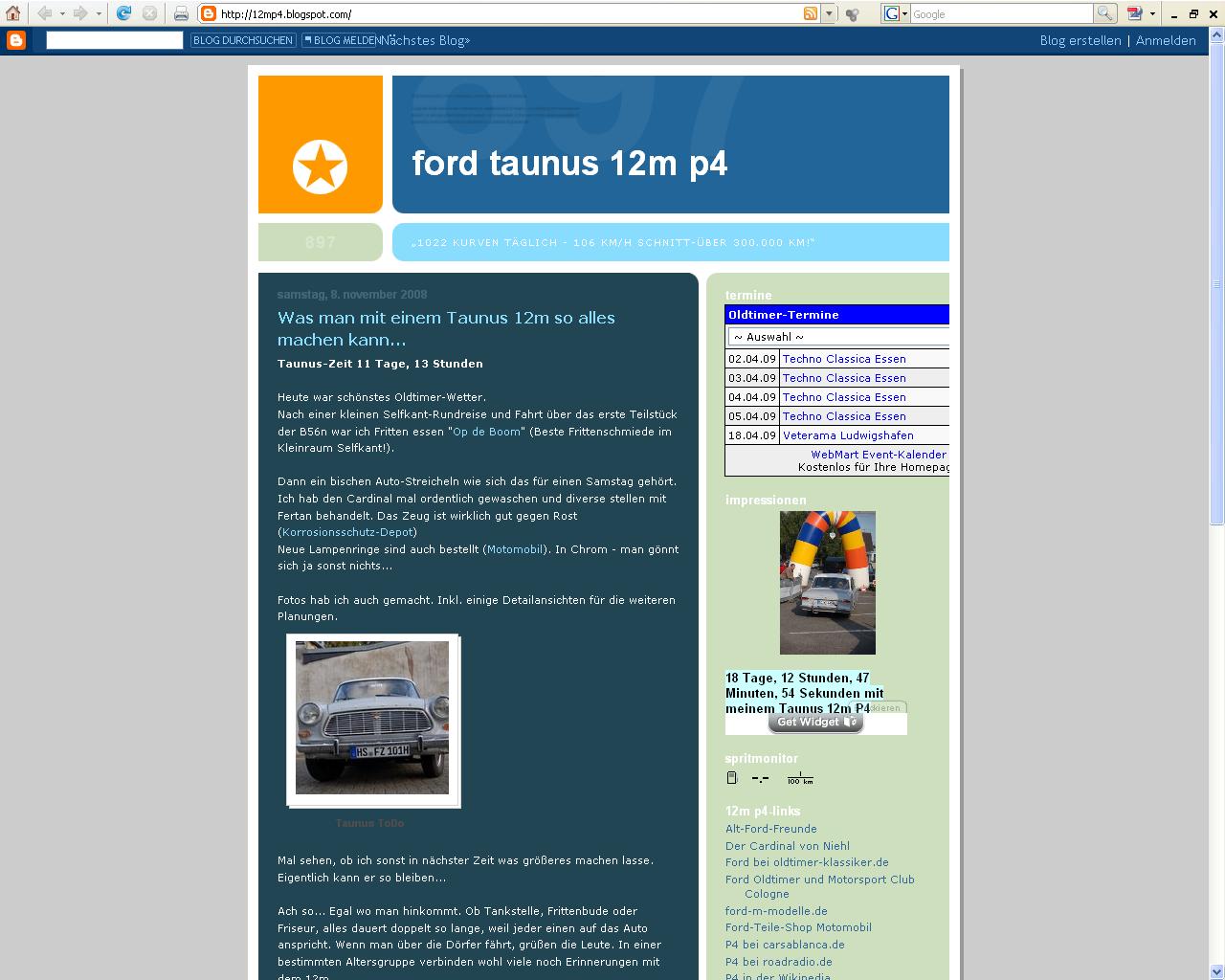 Sein Kommentar: „Das wird ein größeres Projekt. Deshalb habe ich einen eigenen Blog angelegt. Hier gibts also alles Wissenswerte und meine Erlebnisse mit meinem neuen alten Taunus.“