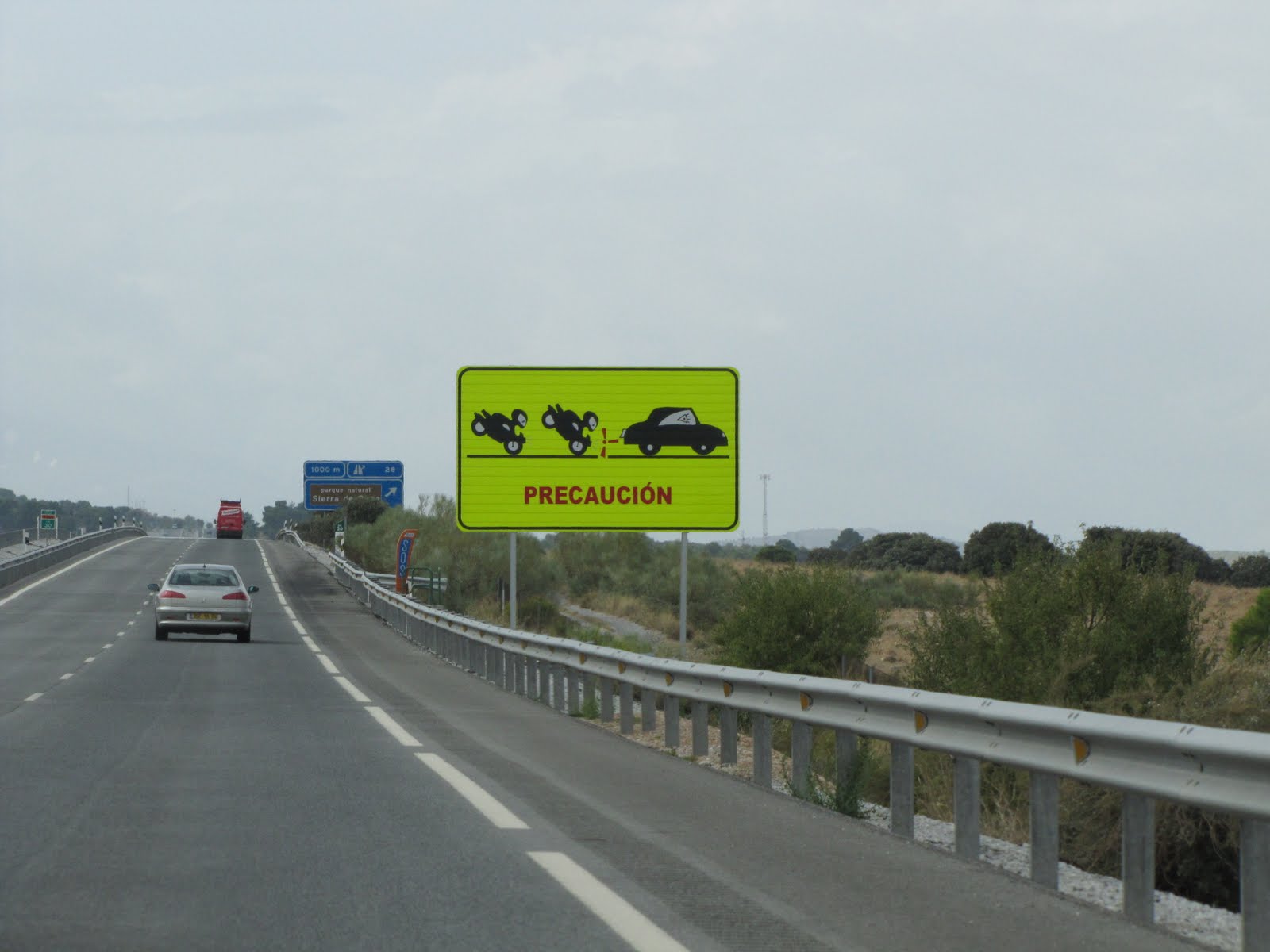 Also betrachtete ich das für mich neue Verkehrsschild genauer und fragte mich: wovor warnt der gemeine Spanier hier auf dem breit ausgebauten, wenig frequentierten Highway eigentlich so massiv?