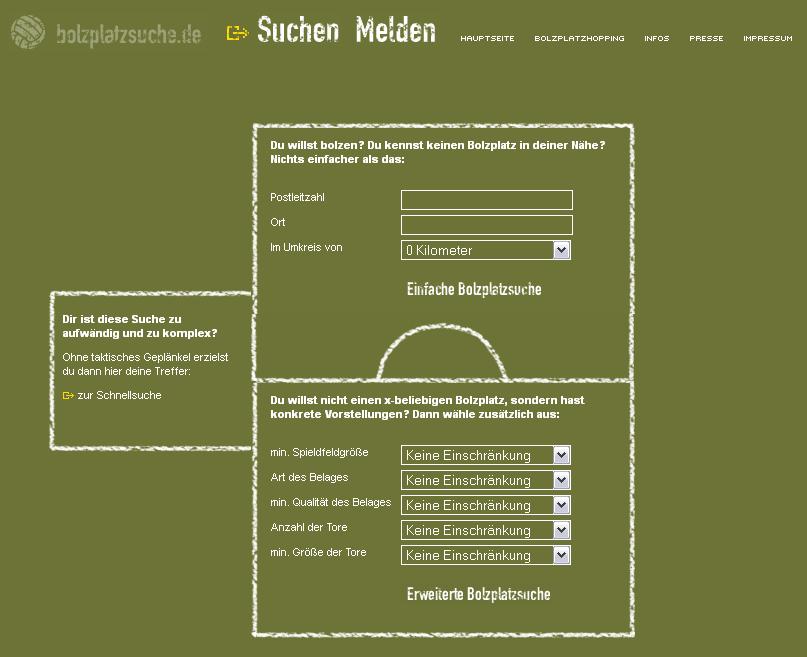 Neben einem Spielgerät in Hohlkugelformat bräuchte es auch einen guten alten Bolzplatz in der Nähe. Da hilft bei der Suche die Internetseite bolzplatzsuche.de, auf der man eine dem Zweck bestimmte stimmungsvolle Umgebung finden kann. Gut gemacht die Seite, inklusive der Möglichkeit des visuellen Bolzplatzhoppings.