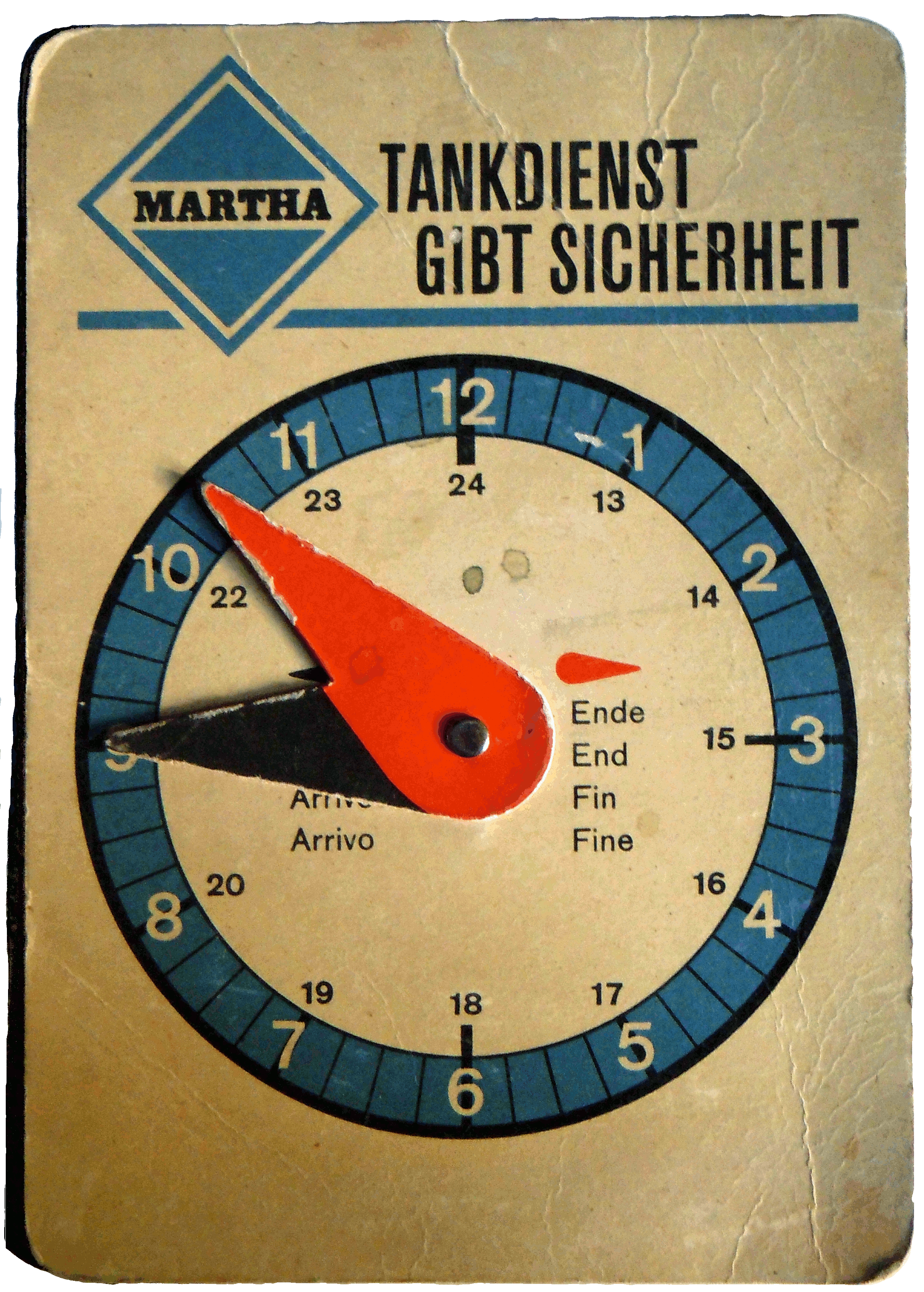 Offensiv von mir interviewt bekam ich eine Auskunft, welche auch 20 Jahre später noch gilt: die ohne Zweifel optisch zum Oldtimer passende Parkscheibe von Martha Tankdienst vertstößt gegen die StVO. Auf mehrmaliges Nachfragen meinerseits, ob die männlichen Politessen meine Ankunftszeit nicht hätten ablesen können (schließlich schien mir das die wichtigste Info für die Parkordnung), erhielt ich die ausschweifende Auskunft: „Nein.“