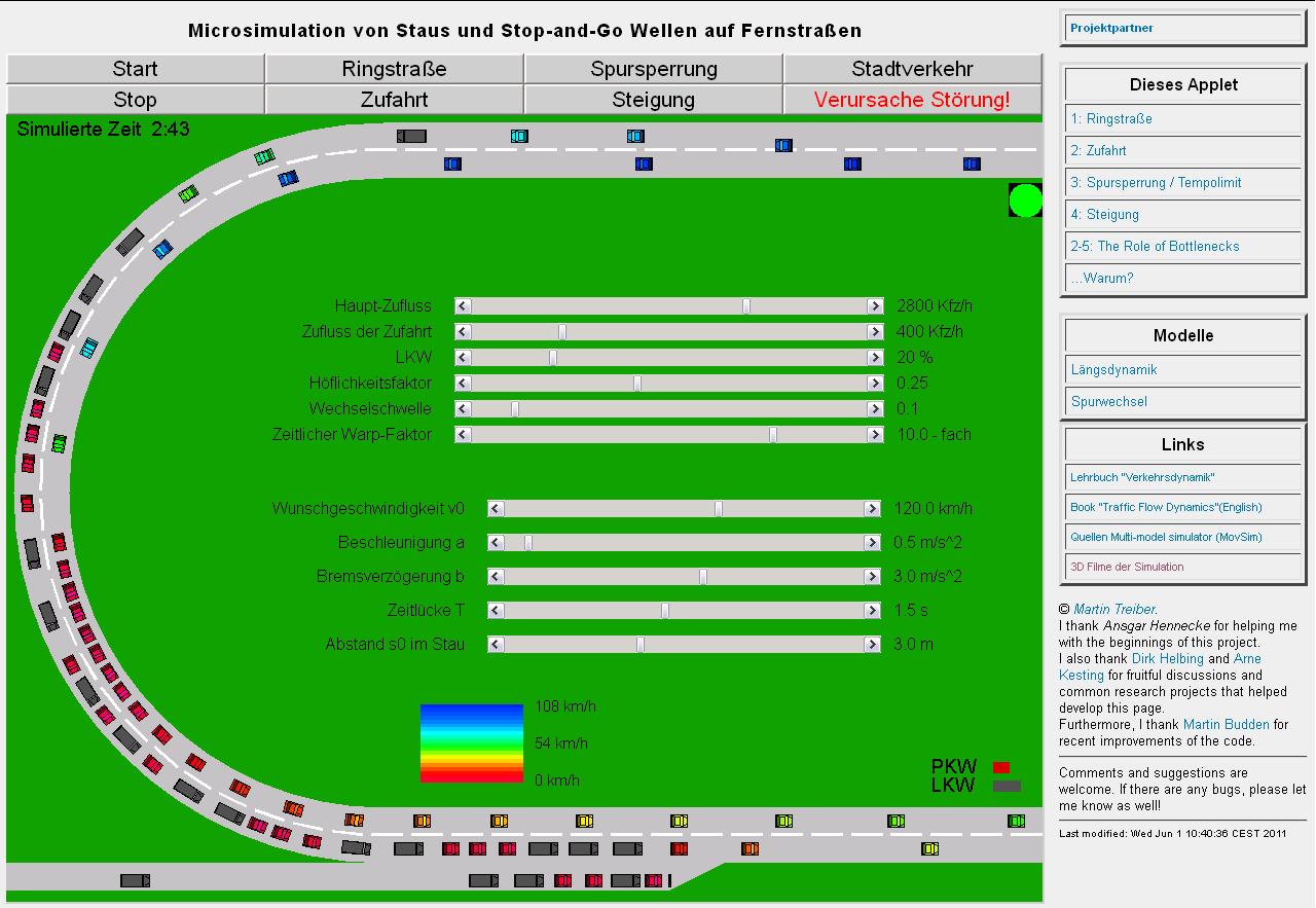 Die Simulation beinhaltet verschiedene Parameter, die man eigenhändig justieren und sich somit als Staugott aufführen kann. Wobei, ein Parameter fehlt, ist mir aufgefallen: der Anteil an partizipierenden Frauen im Straßenverkehr. Bin jetzt kein Verkehrswissenschaftler, sondern nur seit 31 Jahren aktiver Kraftfahrzeugführer mit nationaler und internationaler Straßenerfahrung. Und daher glaube ich schon, dass das allgemein zu beobachtende weibliche Fahrverhalten provozierende Auswirkungen auf die Stausensibilität hat. Oder?