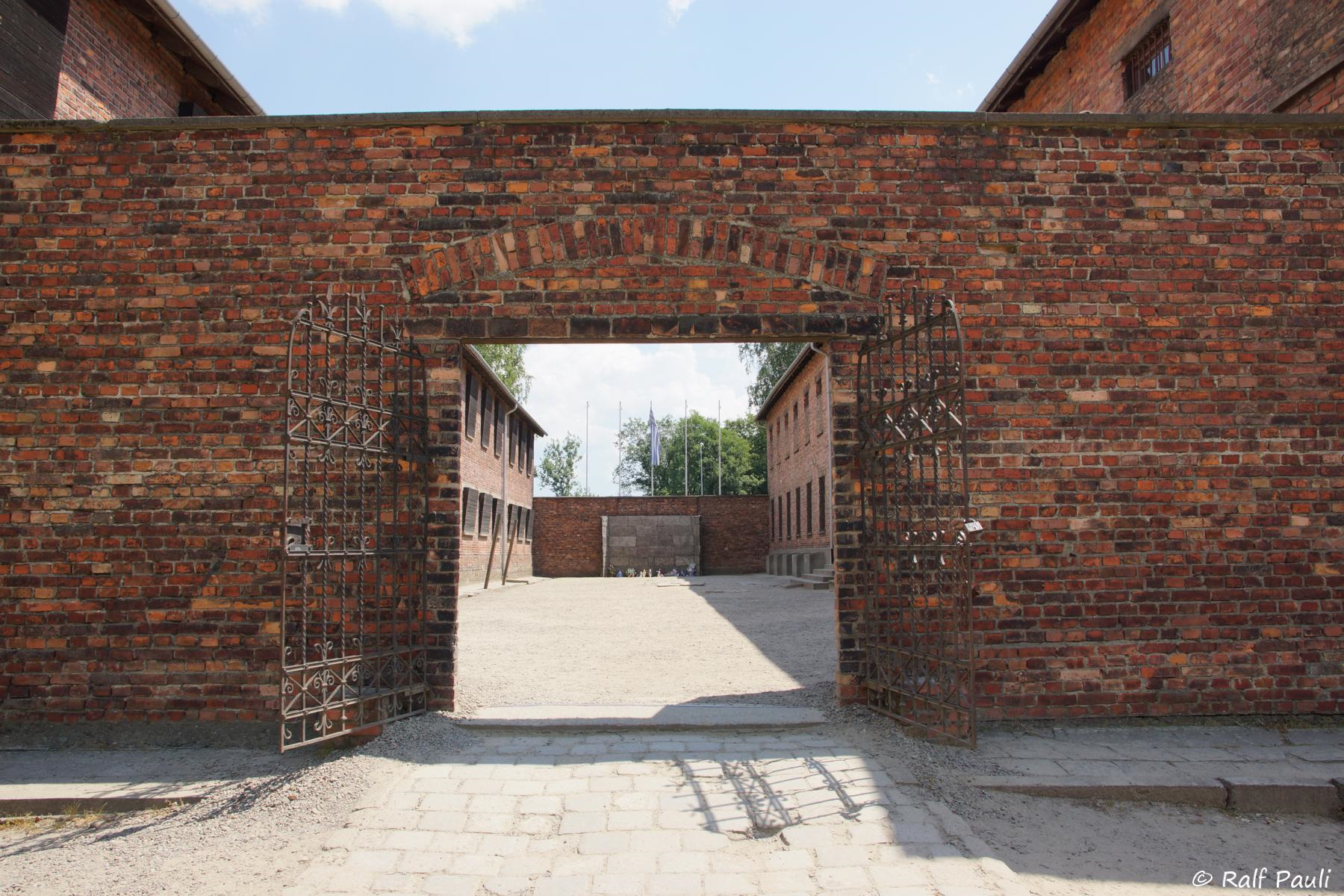 Der Trip durch die Gebäude und dem Gelände war schon ziemlich zügig gestaltet. So blieb kaum Zeit, an der Zelle von Maximilian Kolbe in Block 11 „ausreichend“ inne zu halten. Oder vor der Erschießungswand, gleich außerhalb des Gebäudes im Innenhof. Auch hier hätte ich mir mehr Zeit gewünscht. Aber wir waren auch nicht allein. Der Besucherstrom in der Gedenkstätte war schon enorm. Man spricht von ca. 1,5 Millionen Menschen pro Jahr, die hierher kommen. Solche Massen wollen gelenkt werden.