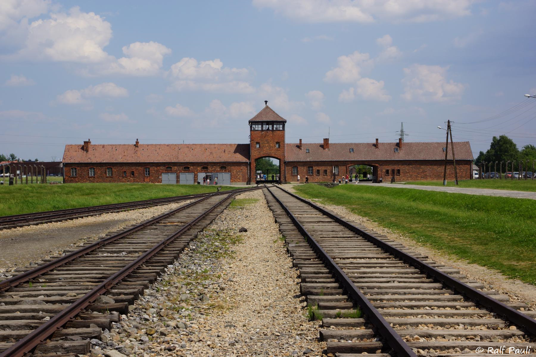 Von Auschwitz ging es mit dem Bus nach Birkenau. Auch hier gibt es Bilder die man kennt. Das Einfahrtsgebäude, die Bahnlinien und die Rampe, wo Hunderttausende angekommen, selektiert und zumeist umgehend in die Gaskammern wenige hundert Meter entfernt geleitet wurden.