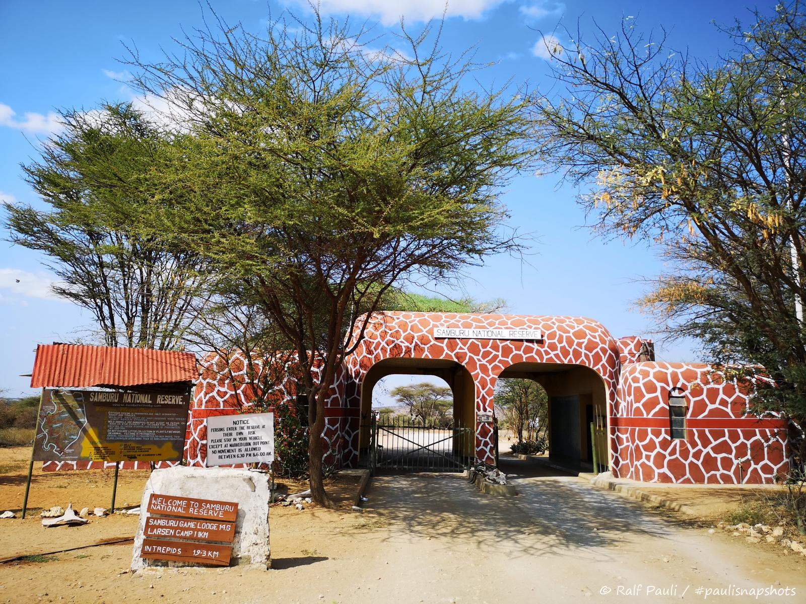 Rund dreieinhalb Stunden hatte die Fahrt von Sandai in den Norden Kenias gedauert, bis wir (Pauli sein Frau, unsere Guides und Fahrer Isaiah „Eagle Eye“ und Joseph sowie Pauli sein Frau ihr Mann) vor dem Eingang des Nationalreservates standen. Nach Zahlung des üppigen Eintritts für drei Tage ging es auch schon los mit der ersten Safari. Denn untergebracht waren wir in der Sopa Lodge. Und die liegt mitten im Reservat.