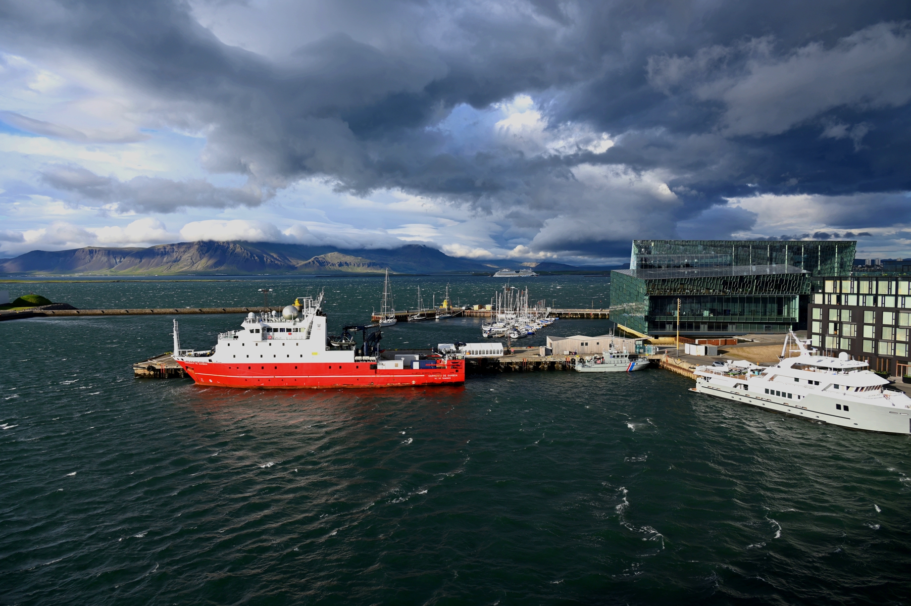 Wir hatten also gebucht und wussten anderthalb Jahre lang immerhin, welche unsere Kabine war. Aber die Anspannung, ob wir die jemals zu Gesicht bekommen würden, war omnipräsent. Sie legte sich erst vollumfänglich, als wir am ersten Abend nach dem Einchecken auf der Fridtjof Nansen oben an Deck an der Reling standen. Wir trotzten den stürmischen Böen in Islands Hauptstadt und erhielten einen ersten hautnahen Eindruck von nordischer Kälte gepaart mit einer beeindruckenden Kulisse von nördlicher Natur.