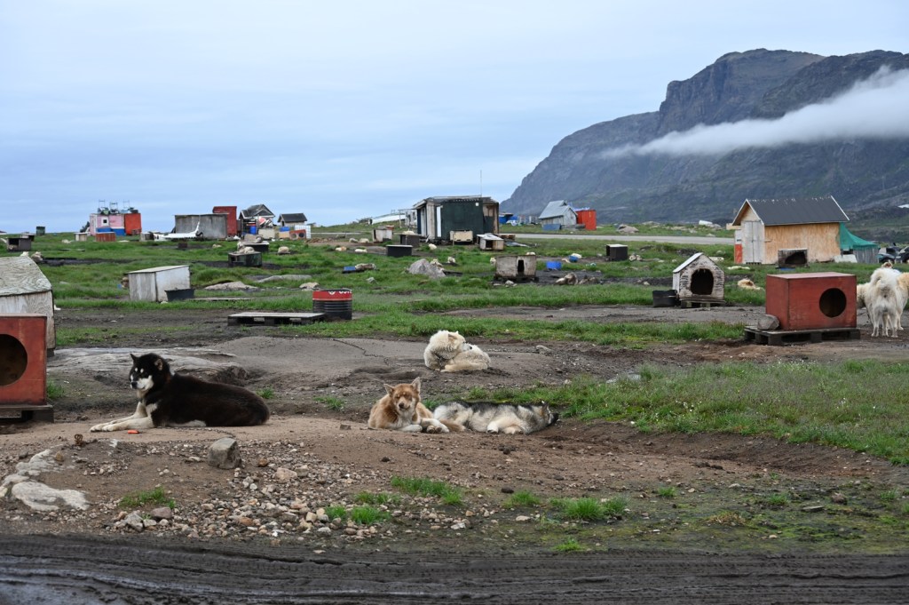 Eine kleine Geschichte am Rande des Abstiegs. Nicht nur auf mich wirkte der Umgang der Einheimischen mit ihren „Arbeitshunden“ etwas befremdliche. Wir passierten „Dog City.“ Hier sind hunderte von Hunden „stationiert“, zumeist angekettet und sich selbst überlassen. Alle zwei/ drei Tage – so wurde uns erzählt – kommt jemand vorbei und bringt Futter. Es sei denn, es gibt was zu tun für die Lebewesen. Gängige Praxis in Grönland. Joh…