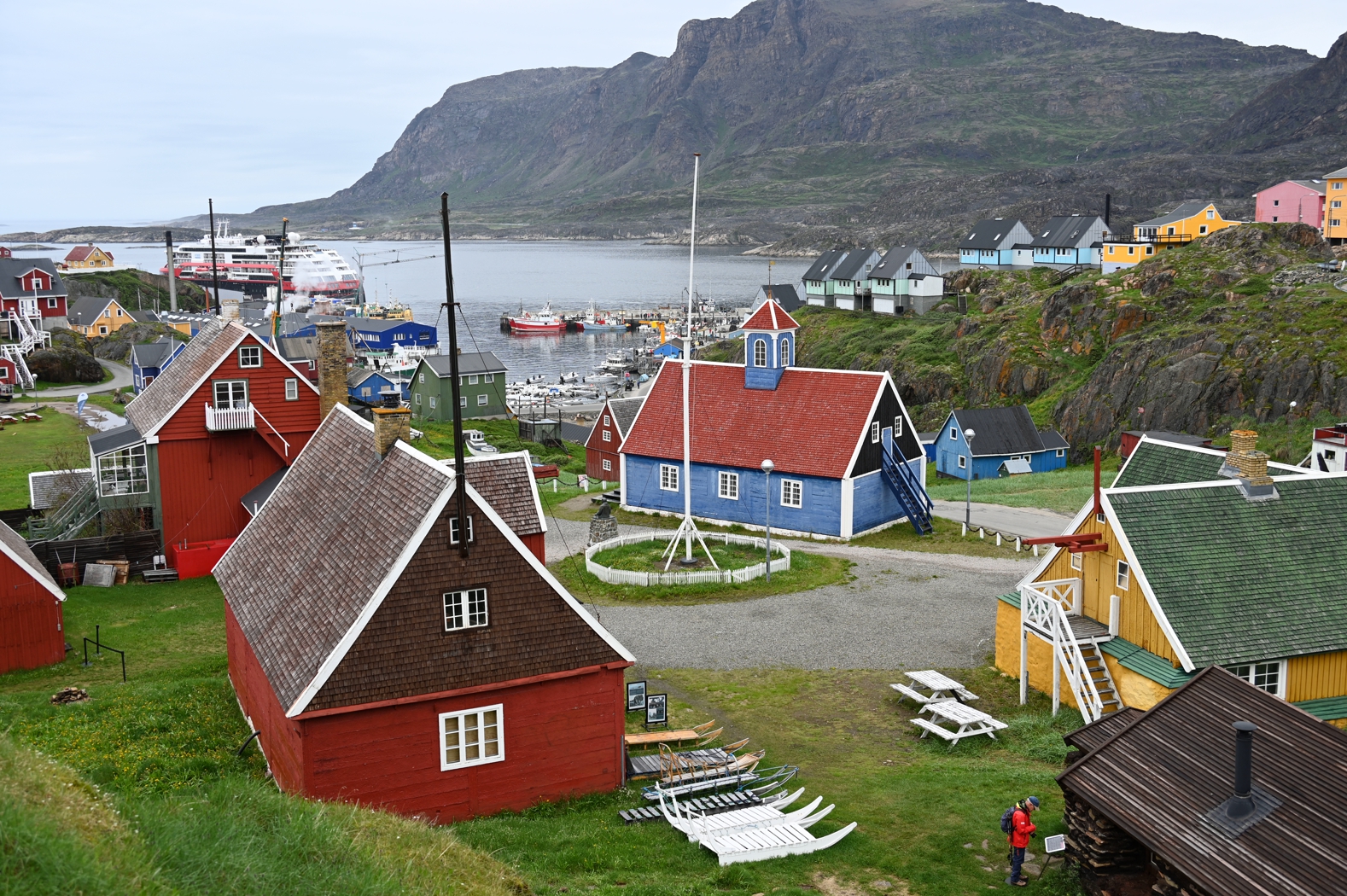 Alles andere als trostlos sondern wirklich schön ist der Kern Sisimiuts. Ein Rundgang vorbei an Museen, Kirche und Häusern war wirklich allumfassend schön und lud an jeder Ecke zum Verweilen ein. Jedenfalls für mich, der ich mich bemühte den Anblick nicht nur auf Fotos festzuhalten, sondern einfach in Ruhe und Muße aufzusaugen. Wann hat man schon so einen Anblick? Mutmaßlich nie mehr.