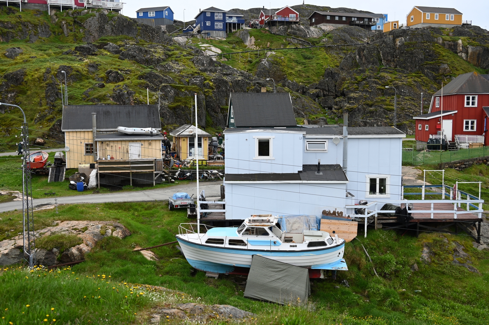 Der Tag ging, ein neuer Tag begann. Es ging nach Maniitsoq. Ein kleines Städtchen mit vielen Brücken und – natürlich – vielen bunten Häusern. Die unterschiedlichen Farben rührten aus der Vergangenheit, weil sie für unterschiedliche Bedeutungen standen. Zwar gibt es die farblichen Zuordnungen heute nicht mehr, wo Rot für Gebäude der Gemeinden, Grün für Geschäfte und Einzelhandel, Gelb für medizinische Einrichtungen und Blau für Fischer und Seefahrer standen. Doch die Grönländer haben sich ihre architektonische Farbfröhlichkeit bewahrt.