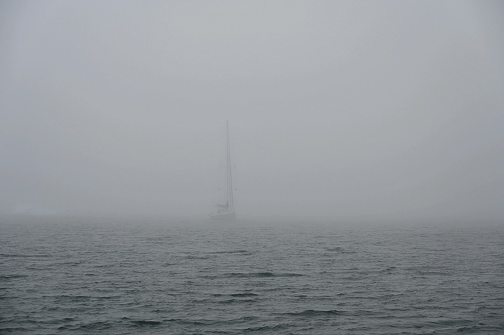 Denn mit jedem Zentimeter aus dem Hafen heraus, nebelte es sich so richtig schön ein und die Sicht betrug vielleicht maximal 50 Meter. Zu wenig, denke ich noch, um die angekündigten und mit Spannung erwartete Aussicht auf Eisberge zu erleben.