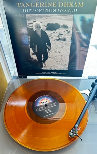 Wollten sie. Flugs drückte ich die Warenkorbtaste und erwarb von Tangerine Dream die nach dem Tod von Edgar Froese von des Gatten Ehefrau zusammengestellte Platte „Out Of This World“ in orangenen Antlitz.